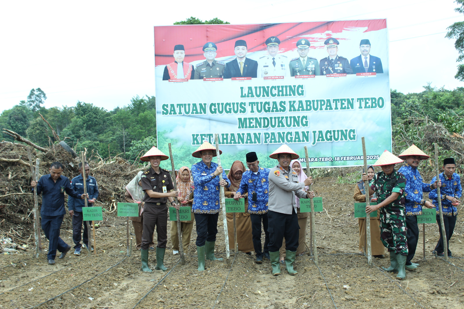 Selasa, 18 Februari 2025, Lounching pengelolaan lahan tanam jagung dalam rangka swasembada pangan di Kabupaten Tebo., Sungai Alai, 37571, Tebo Tengah, Tebo, Jambi, Indonesia, PJ Bupati Tebo bersama unsur Forkopimda, Mendukung Ketahanan Pangan, Pemkab Tebo, Penanaman jagung dilakukan, di lahan Pemerintah Kabupaten Tebo tepatnya di kompleks perkantoran Muara Tebo KM 12. Pada penanaman jagung turut dihadiri berapa kepala OPD, unsur Forkopimda di lahan Pemkab Tebo.