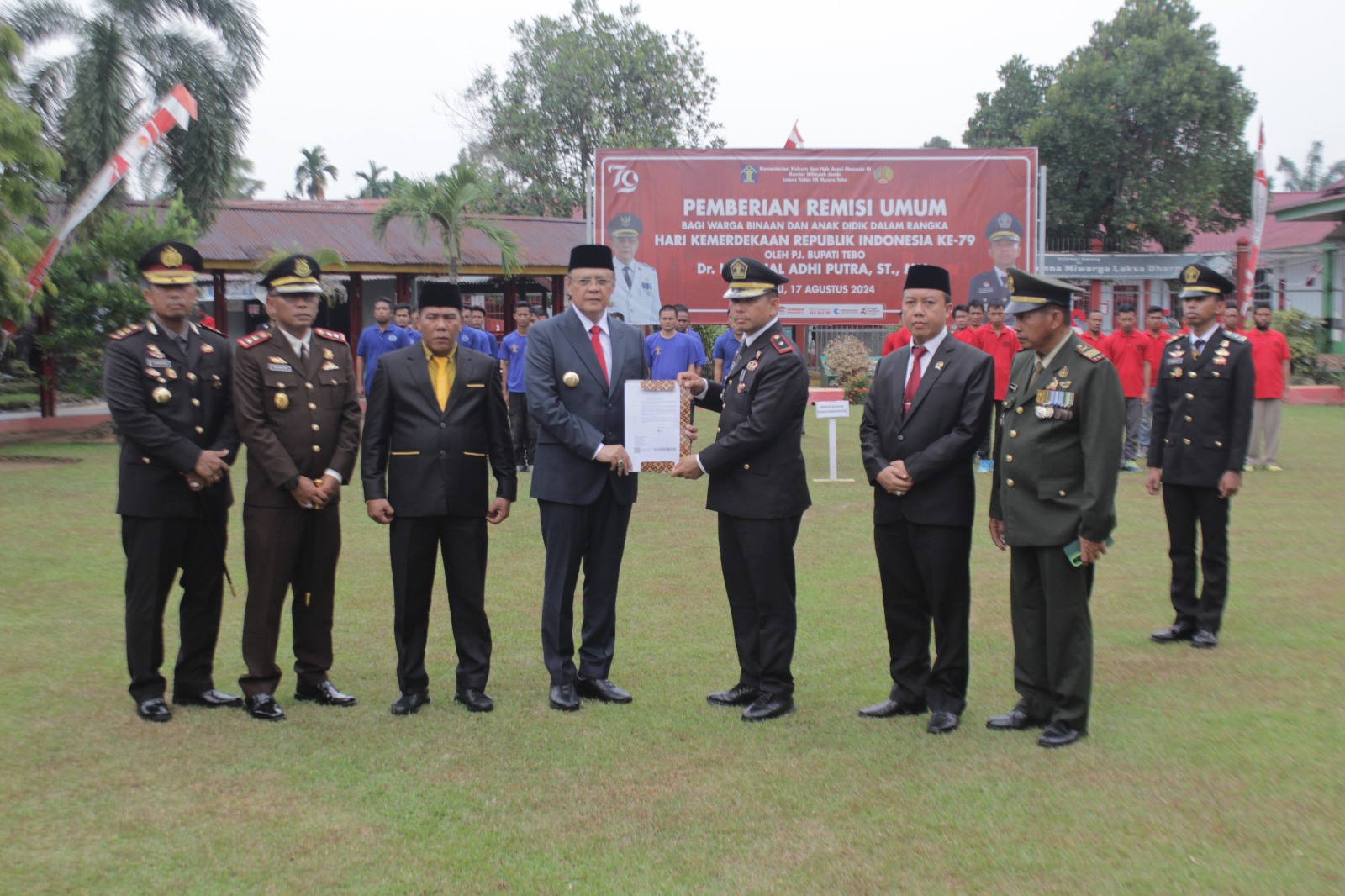 Sabtu, 17 Agustus 2024 sekira Pukul 10.30 wib s/d Selesai, Kepala Kejaksaan Negeri Tebo Bapak Ridwan Ismawanta, S.H., M.H menghadiri acara Pemberian Remisi bagi 324 Narapidana dalam rangka HUT Kemerdekaan Republik Indonesia ke-79.