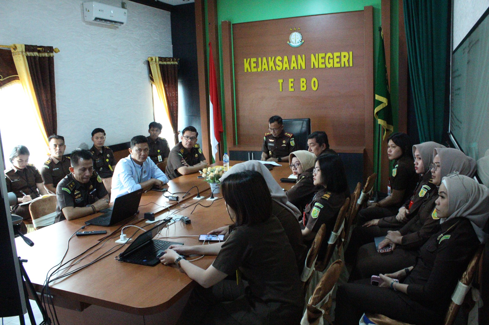 Rabu 08 Januari 2024 pukul 09.00 Wib s/d selesai, Kepala Kejaksaan Negeri Tebo Bapak Ridwan Ismawanta,S.H.,M.H beserta Jajaran mengikuti Sosialisasi dan Pembekalan Jaksa Agung Muda Pengawasan tentang Sosialisasi Peraturan Kejaksaan Republik Indonesia Nomor 3 Tahun 2024 dan Pembekalan Pengunaan Anggaran Tahun 2025 Sosialisasi ini dalam rangka menjamin pengelolaan keuangan negara berjalan secara akuntabel, transparan dan sesuai dengan peraturan perundang-undangan yang berlaku yang di laksanakan secara Virtual yang bertempat di Ruang Vicon Kantor Kejaksaan Negeri Tebo.